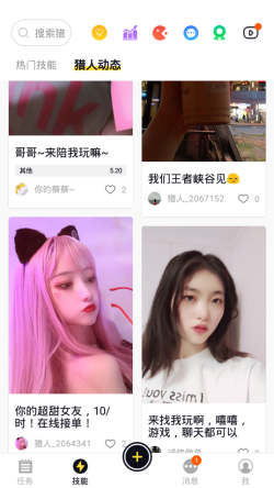 3、发布技能:游戏陪玩、各种小姐姐福利陪聊天,边玩边赚钱。