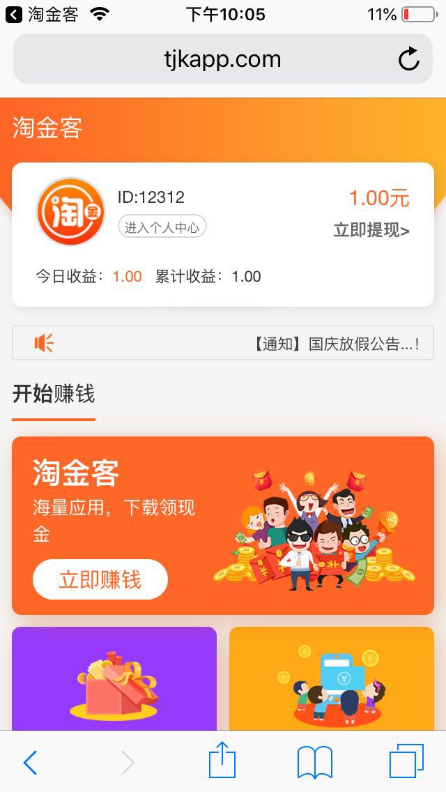 淘金赚钱,原(淘金客),一款苹果手机试玩赚钱平台,试玩有趣好玩的app还能赚零花钱,淘金客为你提供更多好玩的应用,新用户加入还有1元现金红包,赶快加入一起玩吧! 按流程引导操作赚钱,每完成一款应用,即可获得试玩奖励,闲余时间的赚钱神器。