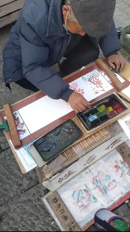 像这样的景点,靠手艺吃饭的,有时候不开张,一但开张会连着开,刚开始没写的时候几乎没有人围观,给我写的时候,围观的人越来越多,有人拍照的,有拍抖音的!一会的功夫五六个人都去写了!大爷忙的不亦乐乎!