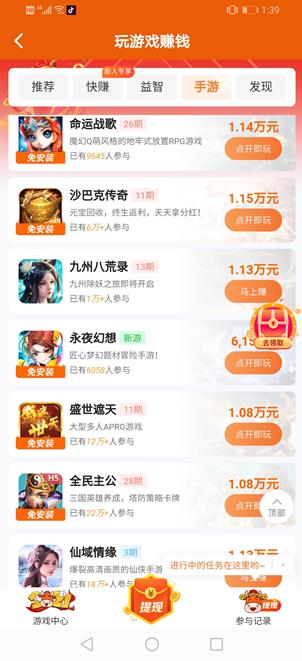 在平台中玩游戏赚钱的步骤是很简单的,所以你自己肯定可以完成。新手用户也可以从“快赚”中先玩游戏新手任务,这类任务是最简单的,你玩两分钟游戏就能完成新手试玩任务了。