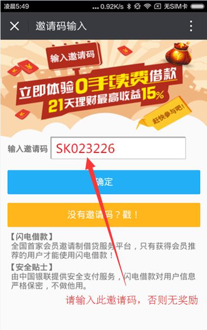 4、输入“邀请码”,请输入邀请码:SK023226,不输入无任何活动奖励哦。