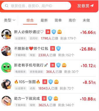 赏帮赚APP是一款以悬赏任务为赚钱方式的软件,一个任务就是一单,每个任务都有赏金,完成之后就可以赚到赏金。任务类型很多,比如说关注类任务,只需要关注某个公众号或者某个平台上的账号,就可以完成。这种关注类的任务通常的赏金是1元左右,做起来既简单又快速,一个小时起码就可以做十几个任务,获得十几块左右的收入。