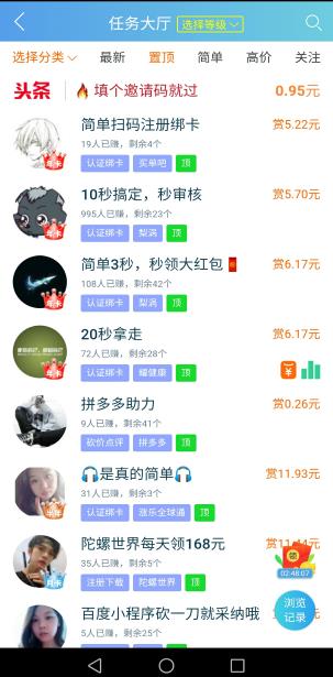 在平台中主要就是做任务赚奖励,任务就是下载注册、砍价红包、关注投票、分享转发、电商、多天任务、高价任务,每天做一两个小时任务最少就能赚到一百多块钱的奖励了。